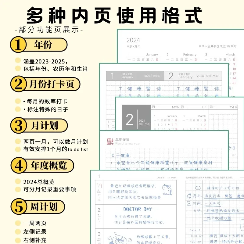 Source : onplanners.comKinbor 2024 Weekly Plan Book Grid Notebook ๋ค์ด์ด๋ฆฌ Schedule Self